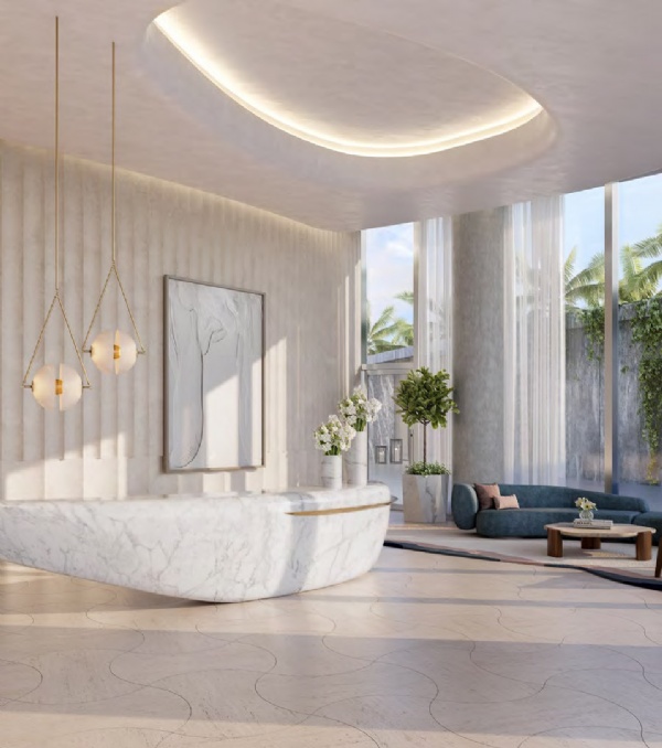 The luminous glass facade of this 275-foot tower reflects the dazzling beauty of the natural surroundings. Inside, every exquisite element is designed with impeccable attention to detail. The grand scale of these beachfront family villas—with their generous balconies, large windows and private elevators—creates discrete residences.