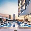 • Sunset and sunrise pools accented by wooden benches and lush gardens