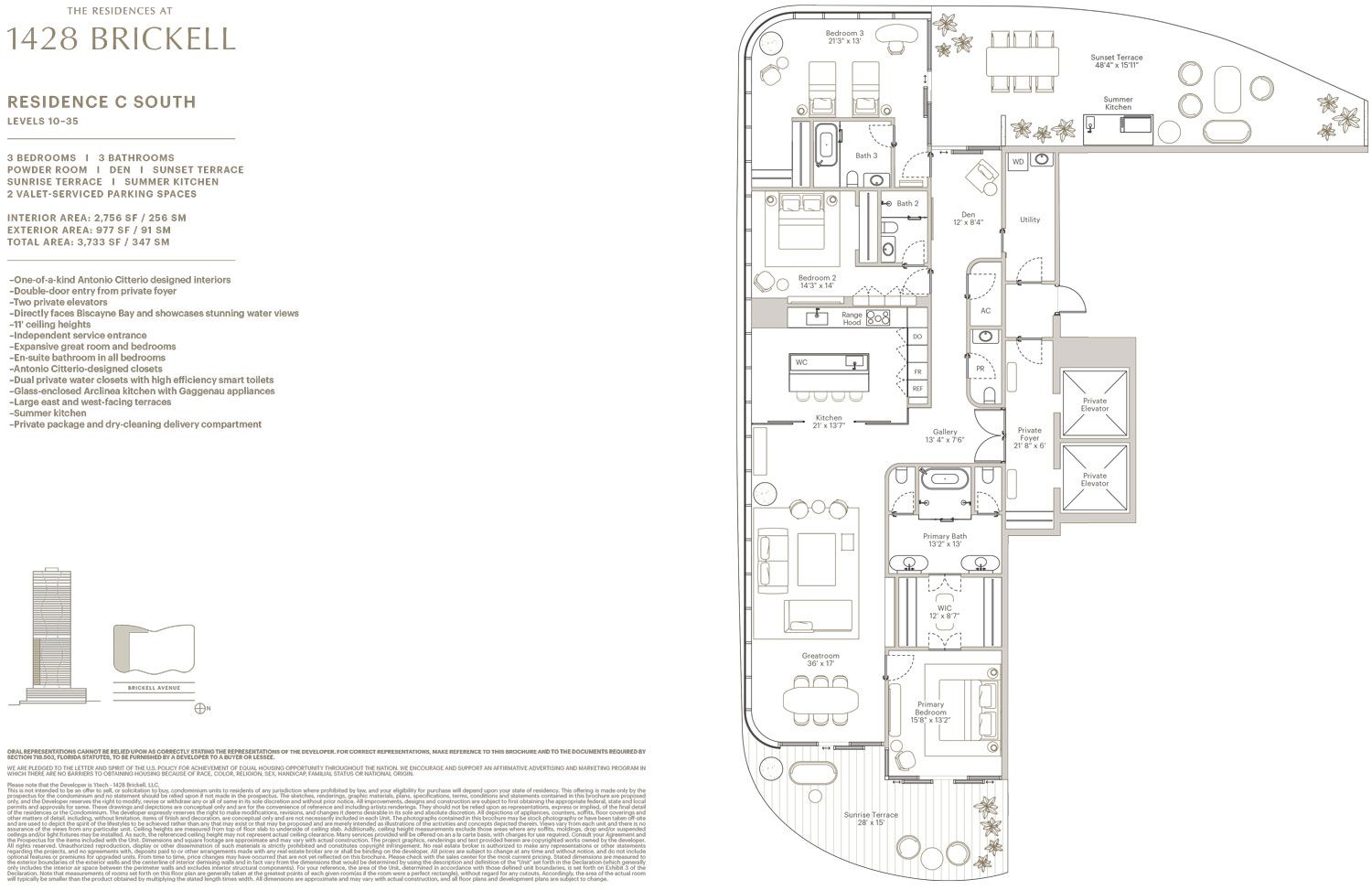 Available in two- to four-bedroom plus den floorplans, providing 1,800 to 4,000 square feet. Every home directly faces Biscayne Bay showcasing stunning water views.