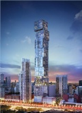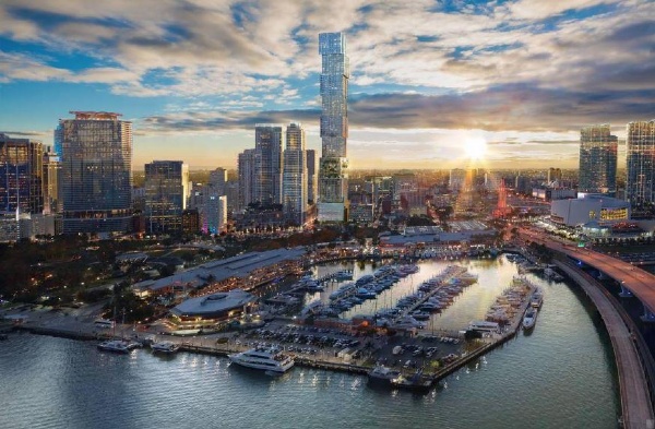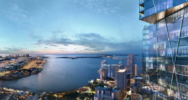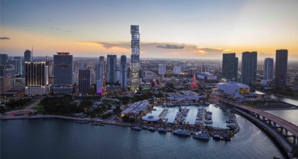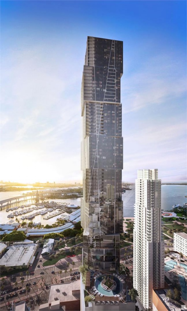 Impressive Architecture: Soaring 1,049 feet into the sky over 100 stories, this development will stand as Miami's tallest tower and its first supertall skyscraper. Designed by visionary architect Carlos Ott and Sieger Suarez Architects, its striking appearance, resembling nine stacked glass cubes, is a testament to modern elegance.