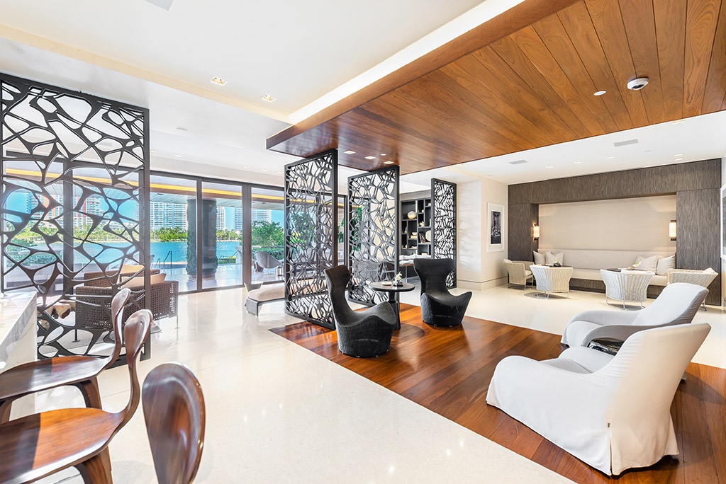 Palazzo Del Sol has a number of amenities which include private massage rooms, poolside cabanas, a modern movie theater with upscale seating and premium sound, a playroom for kids called "Kidville”, meeting rooms and much more. The residences of Palazzo Del Sol in Fisher Island are available in a variety of options which include a pair of lanai units and a trio of penthouses. Private pools and eighteen foot swimming pools are a sample of the residential features.