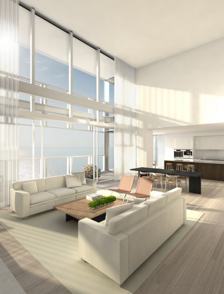 Concierge, a fitness center with modern equipment and personal trainers on hand, a valet and limo service, the amenities of The Residences at Miami Beach Edition condo go above and beyond the standards. There is also a beachfront area that includes umbrellas and chairs available exclusively to residents, a theater, poolside cabanas and much more. The actual residences have several design features by architect John Pawson and also come with floor to ceiling glass windows and private foyers.