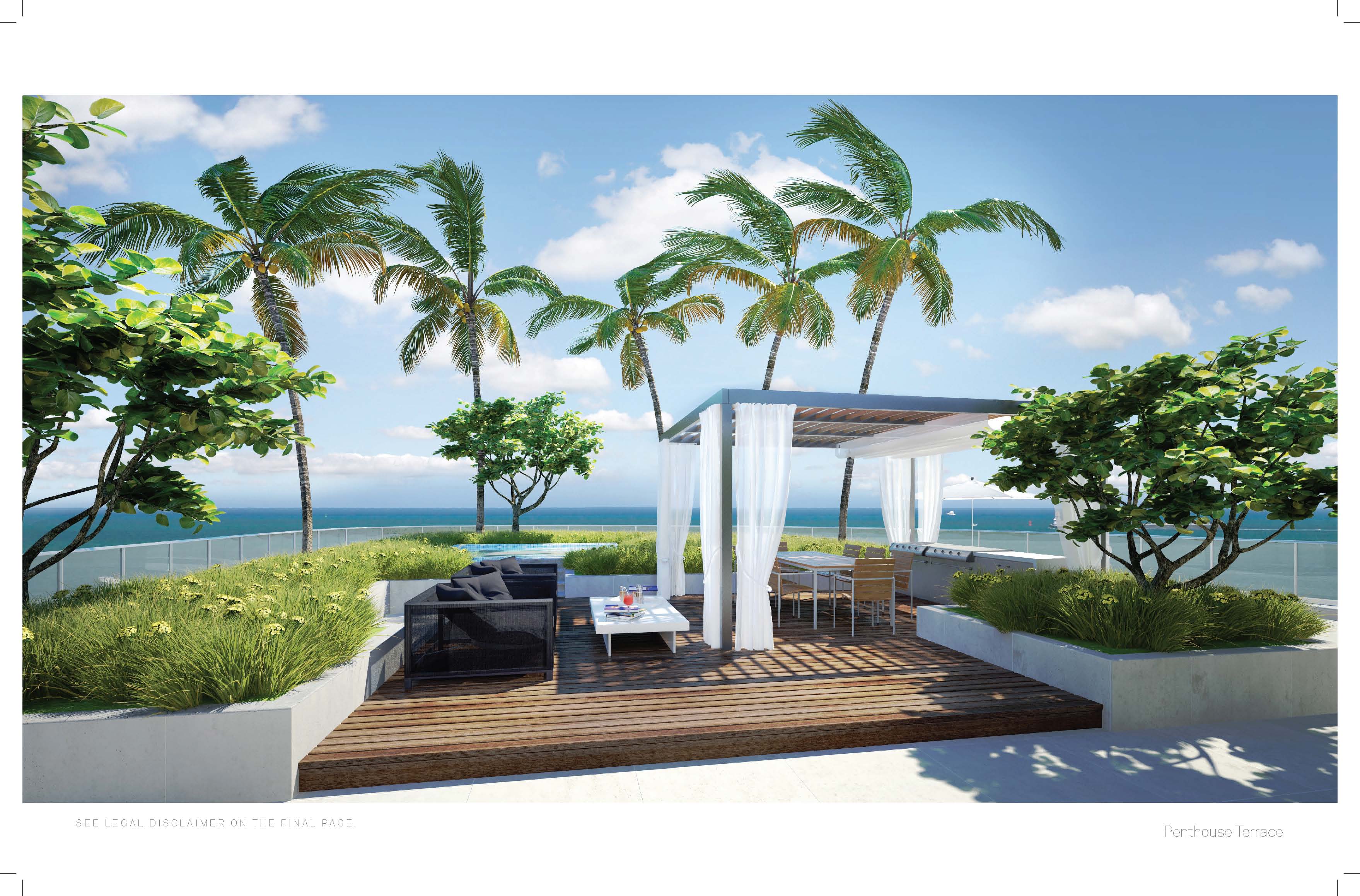 Most Miami Beach condos have the convenience of concierge but One Ocean improves on this standard by allowing residents to request concierge services using an iPad tablet. The building also has outdoor areas with artistic features by Jose Bedia, a Zen park, a deck with an infinity edge swimming pool, a clubhouse featuring interior design by the firm of Yabu Pushelberg and membership to a private beach club. The units of One Ocean condo have three, four or five bedrooms. Penthouses as well as some residences also have their own rooftop terraces.