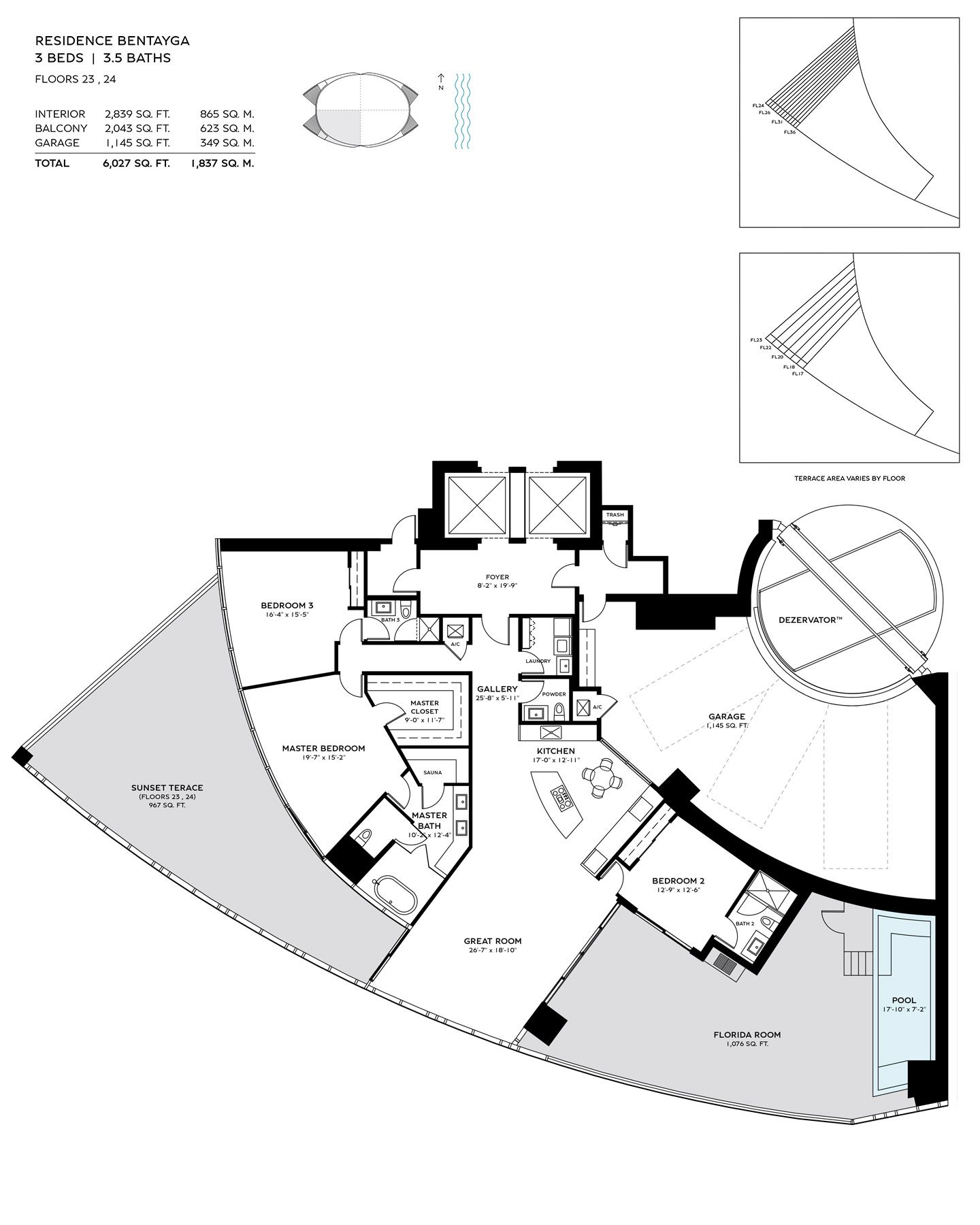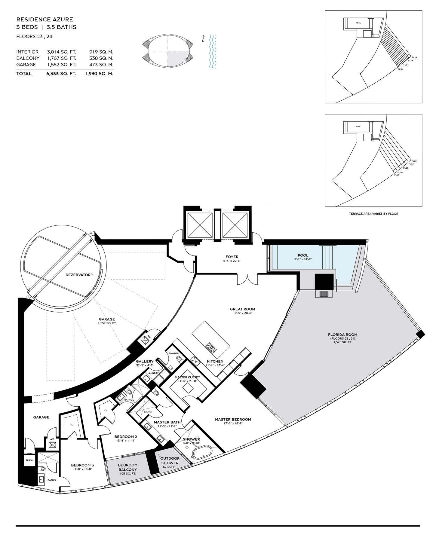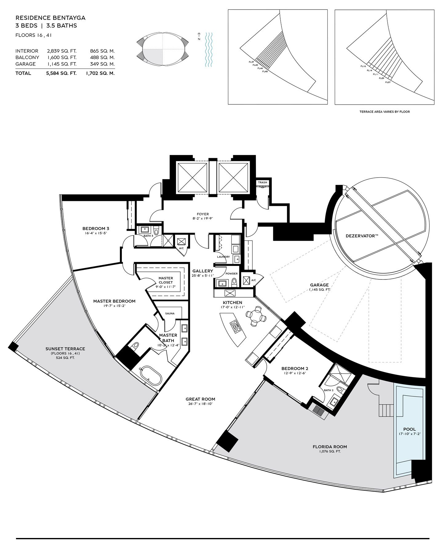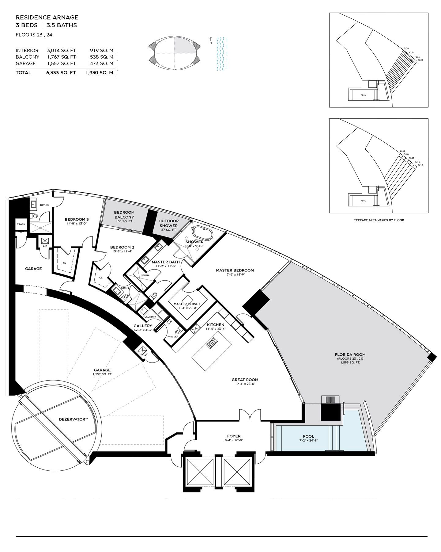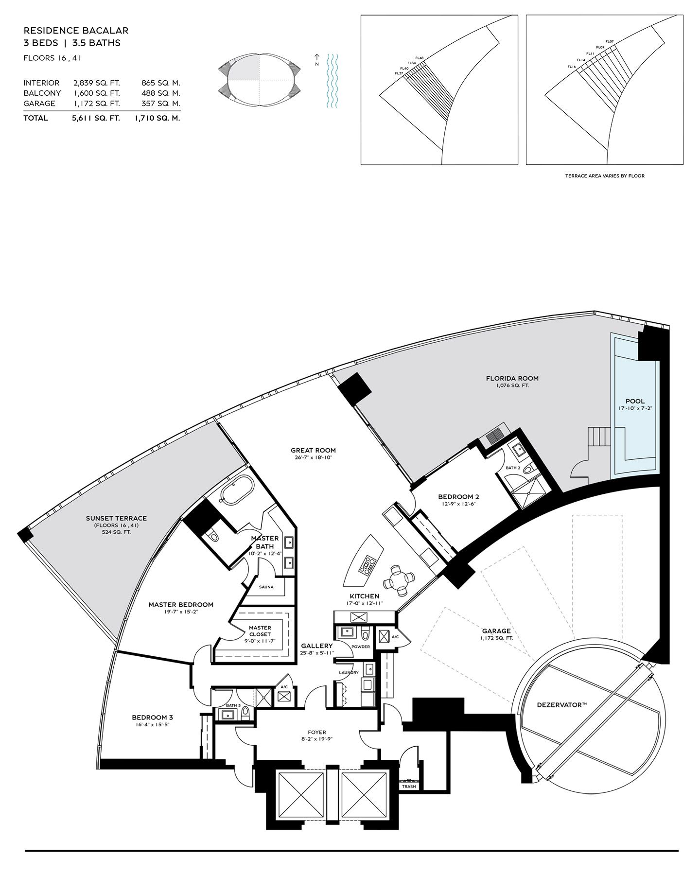 • Private 3 or 4-car garages in each residence accessible through the DezervatorTM vehicular elevator system