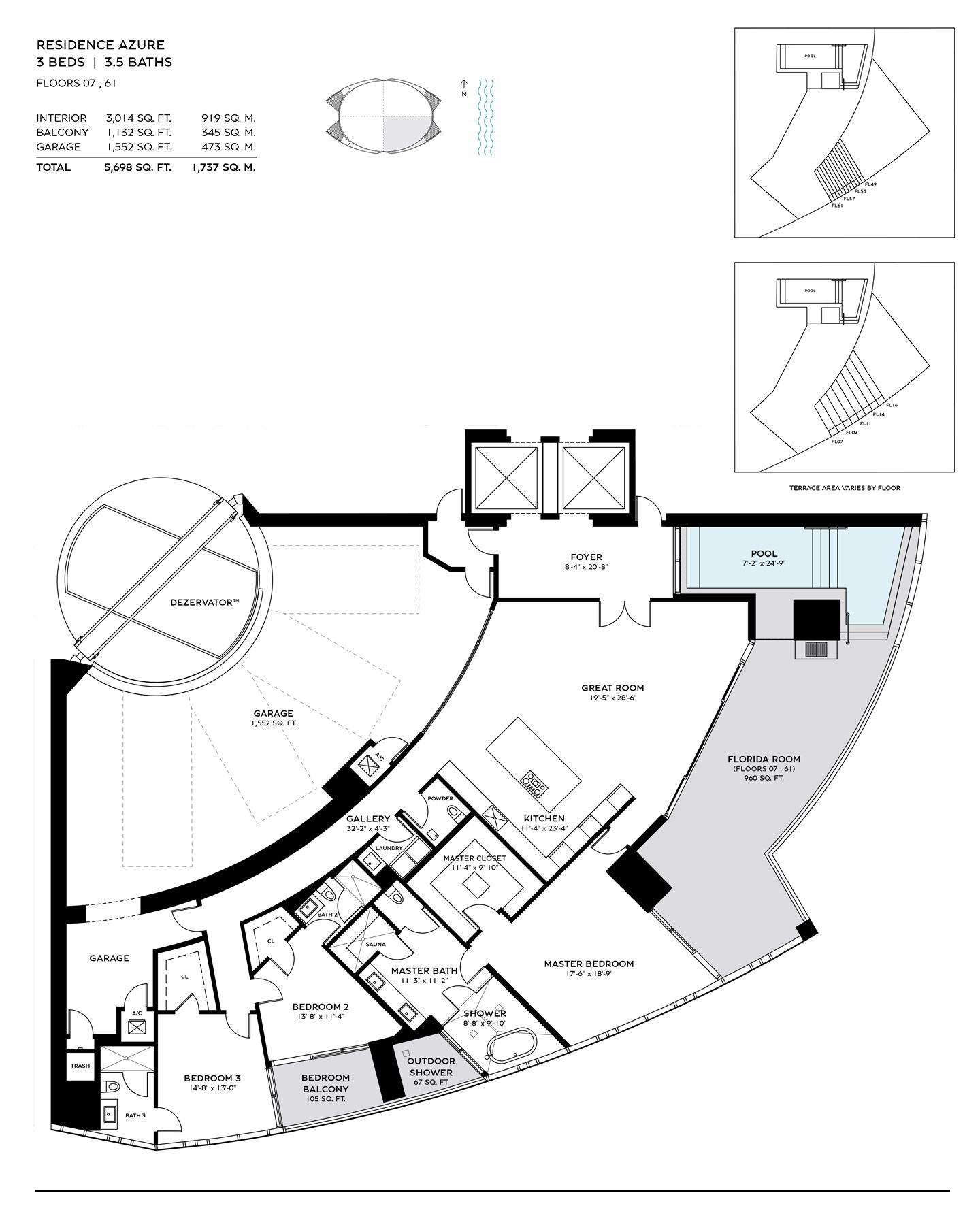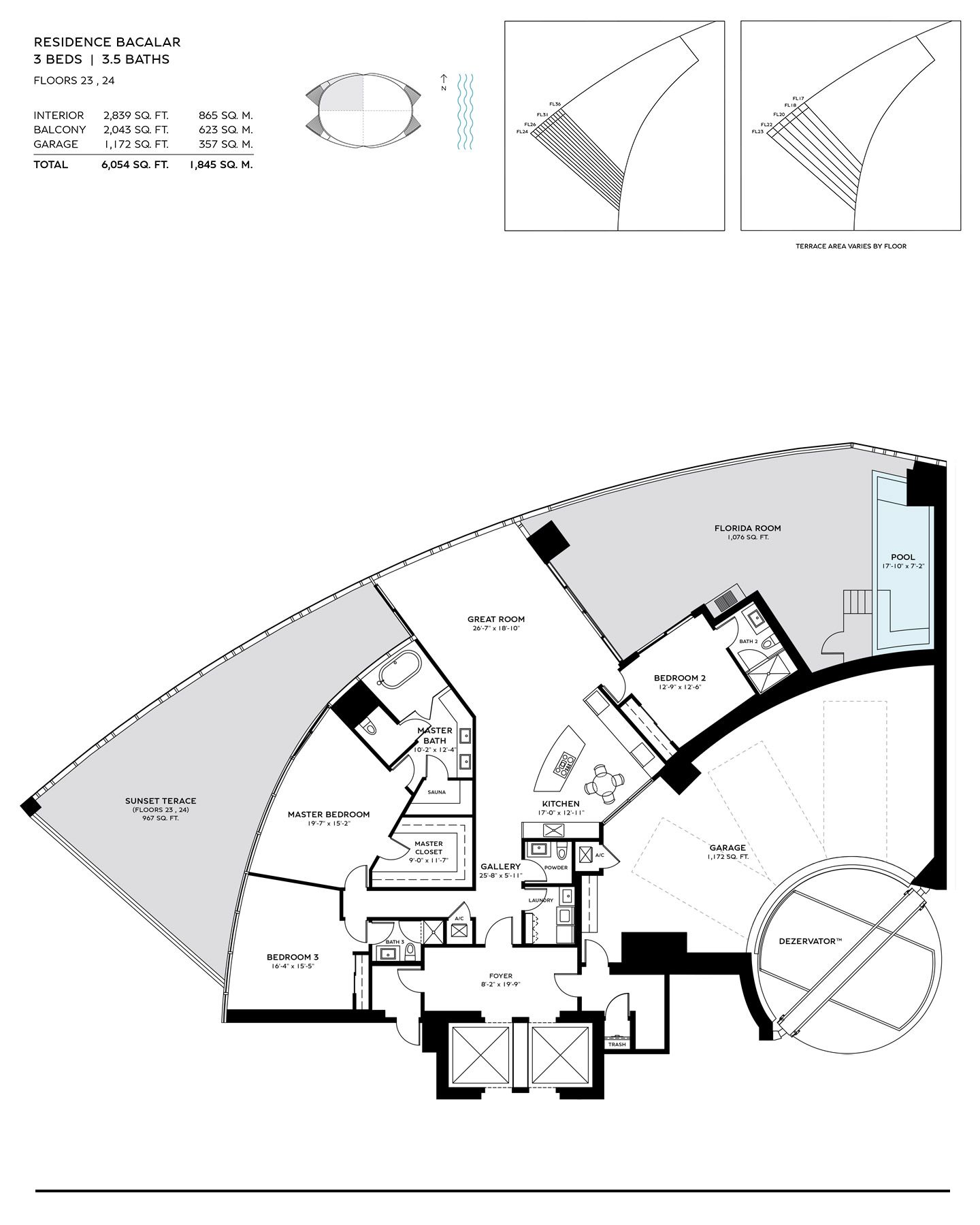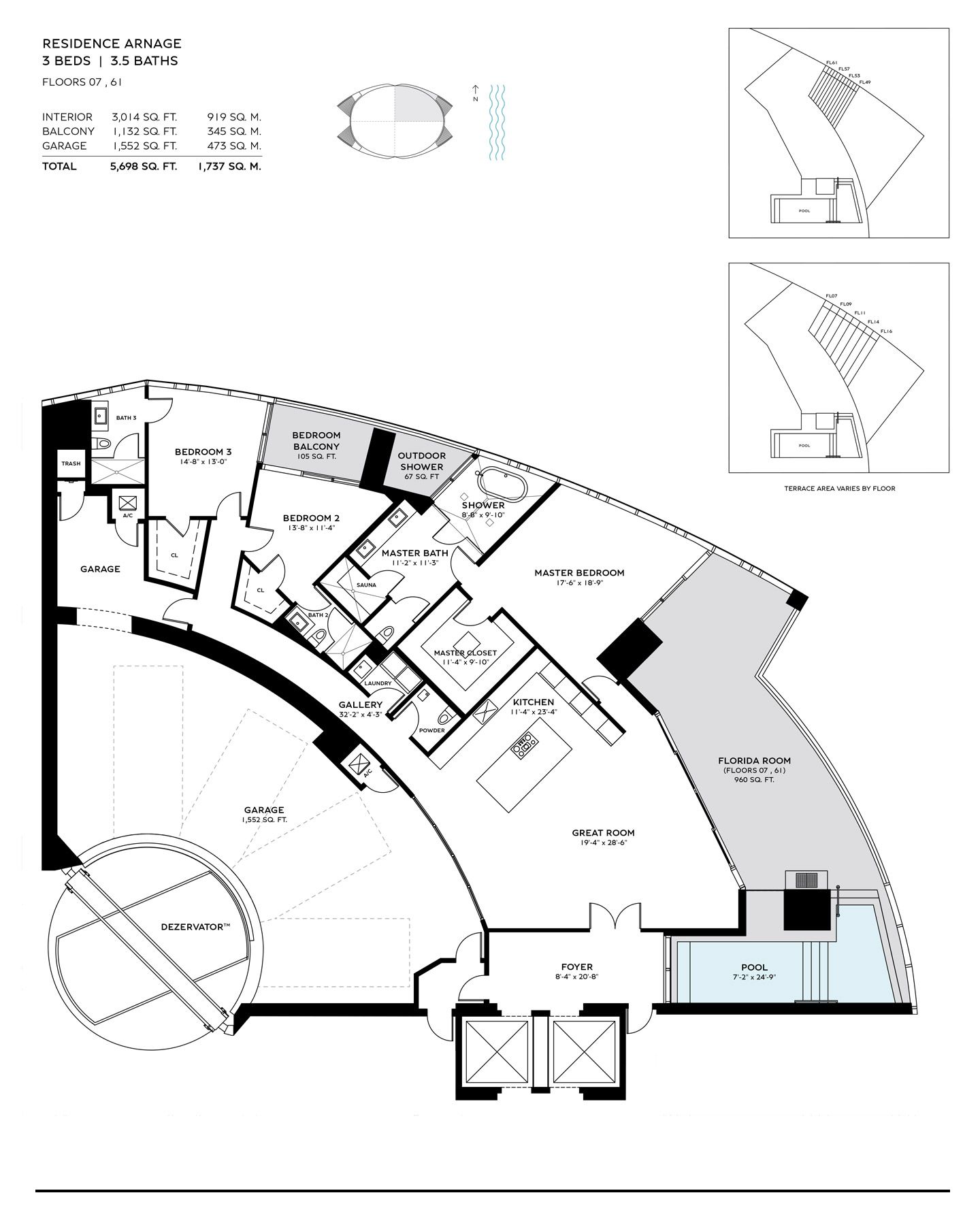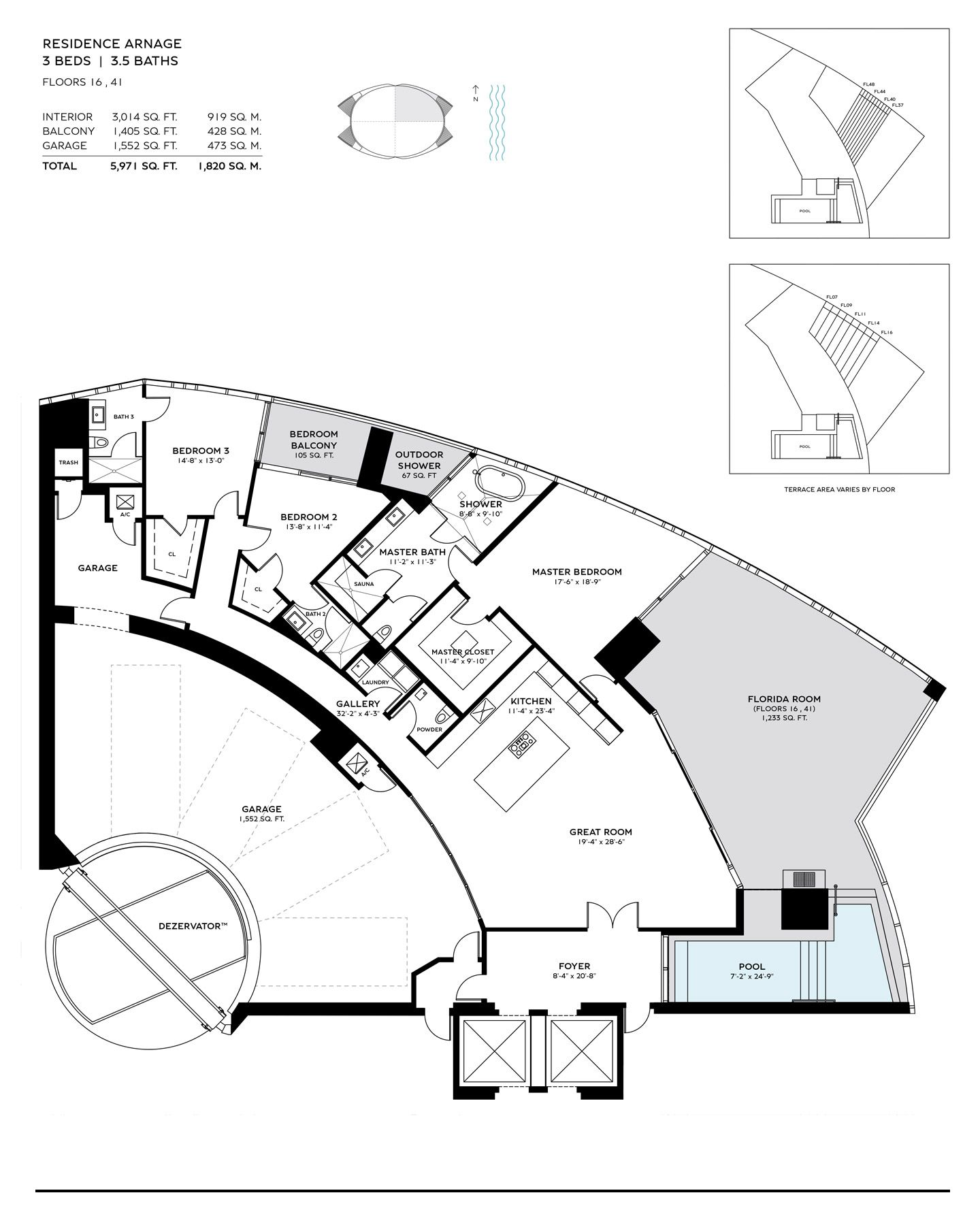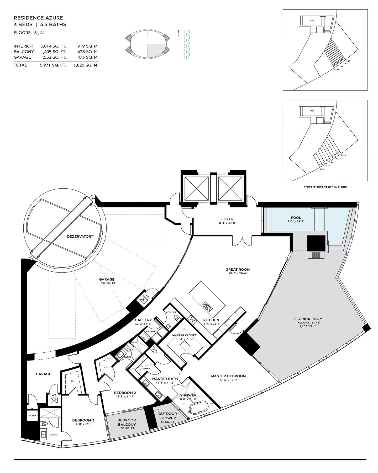 • Private 3 or 4-car garages in each residence accessible through the DezervatorTM vehicular elevator system
